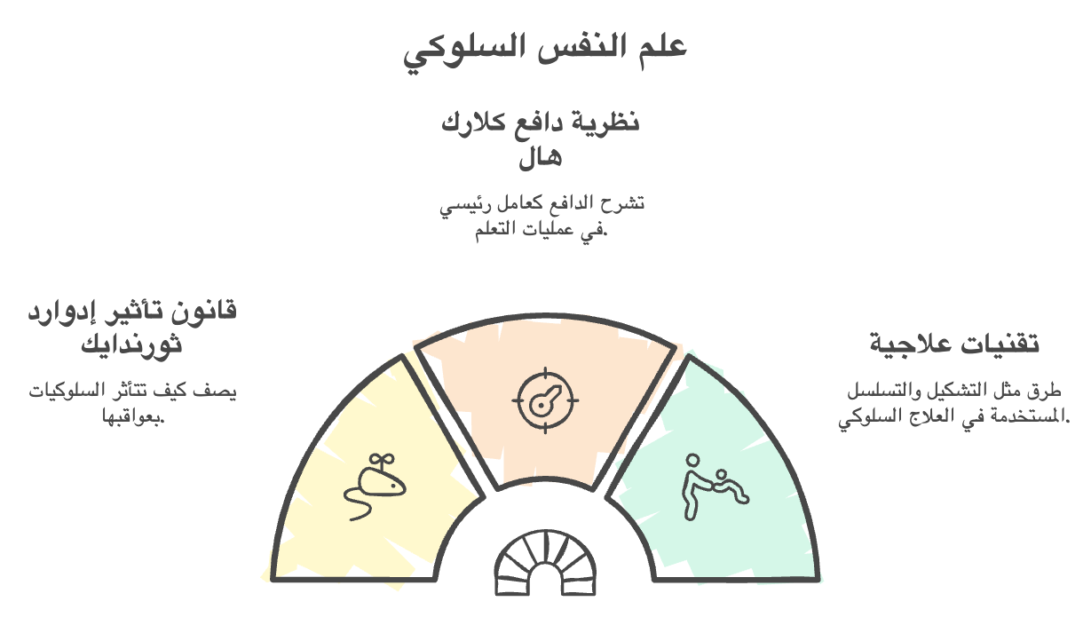 أثر العديد من المفكرين في علم النفس السلوكي. من بين هؤلاء إدوارد ثورندايك، Edward Thorndikeعالم النفس الرائد الذي وصف قانون التأثير، وكلارك هال، الذي اقترح نظرية الدافع للتعلم.