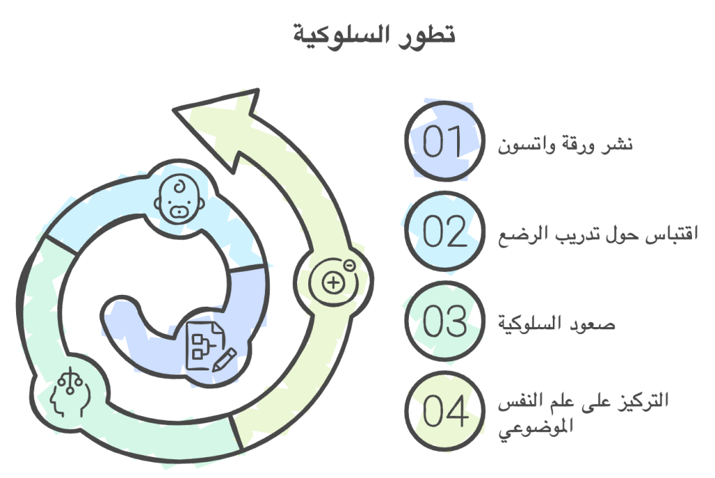 تأسست السلوكية رسميًا مع نشر الورقة الكلاسيكية لجون ب. واتسون John B. Watson عام 1913 بعنوان ”علم النفس كما يراه السلوكي.“