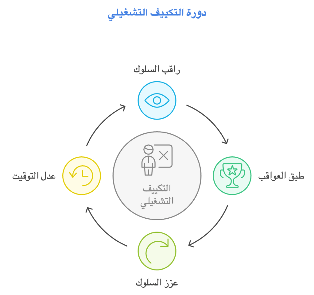 وصف عالم السلوكيات ب. ف. سكينر التكييف الفعال بأنه العملية التي يمكن أن يحدث فيها التعلم من خلال التعزيز والعقاب.9 وبشكل أكثر تحديدًا: من خلال تكوين ارتباط بين سلوك معين وعواقب هذا السلوك، يتعلم الطفل من خلال تكوين ارتباط بين سلوك معين وعواقب هذا السلوك.