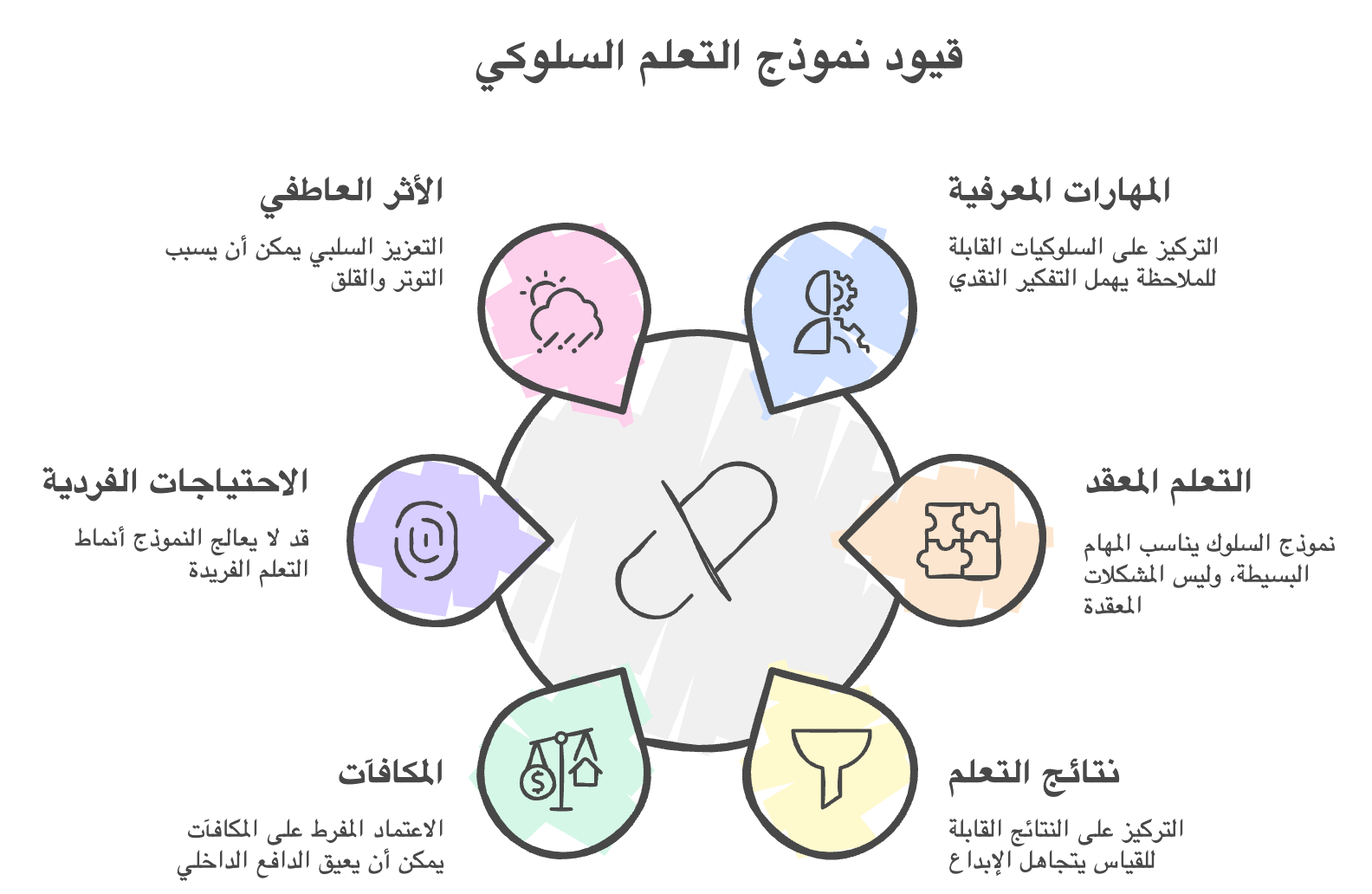 - التخصيص المحدود: قد لا يلائم النموذج السلوكي بشكل كامل الفروق الفردية في أساليب التعلم ونقاط القوة والتحديات. قد يحتاج بعض الطلاب إلى نهج مخصص يأخذ في الاعتبار احتياجاتهم الفريدة.